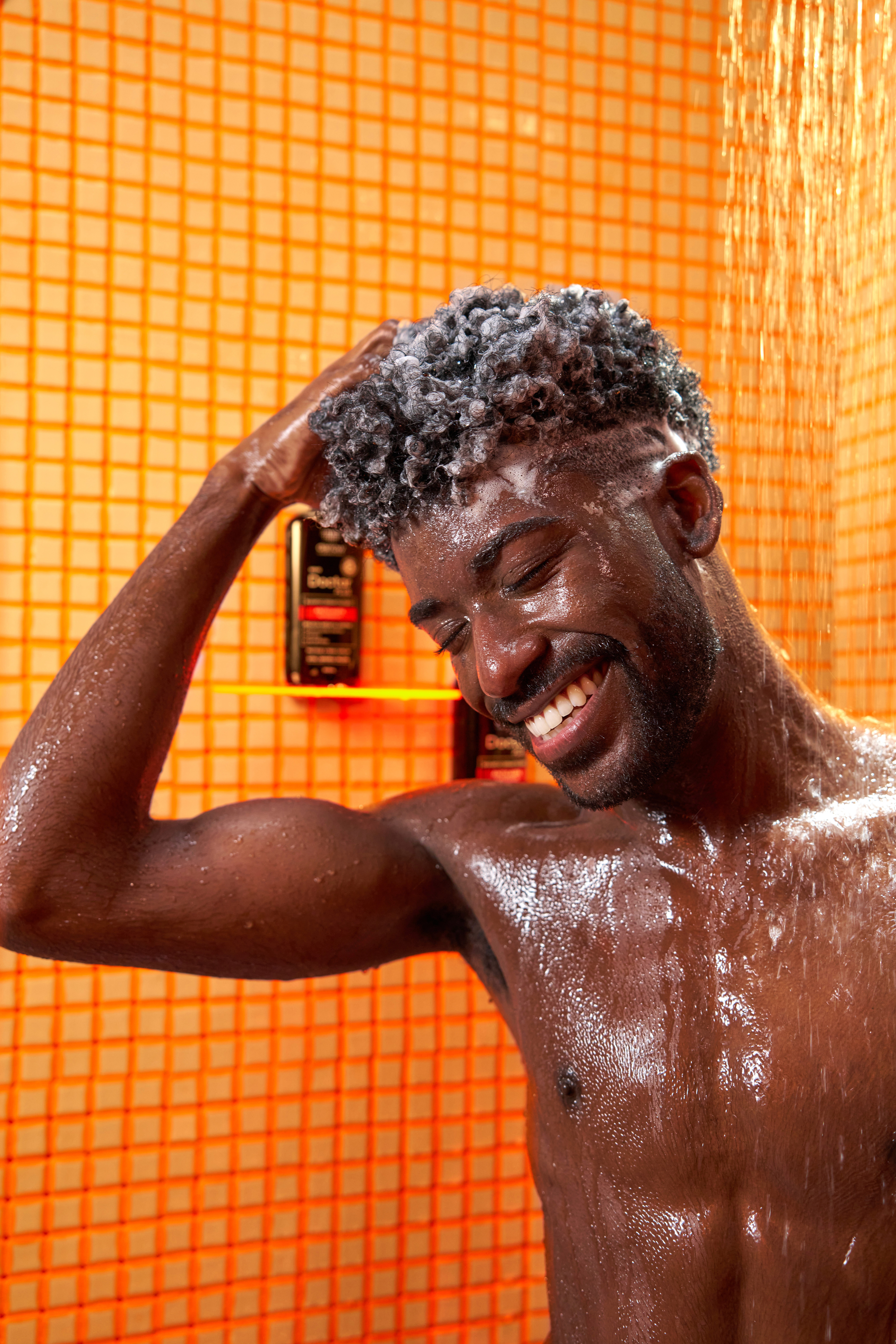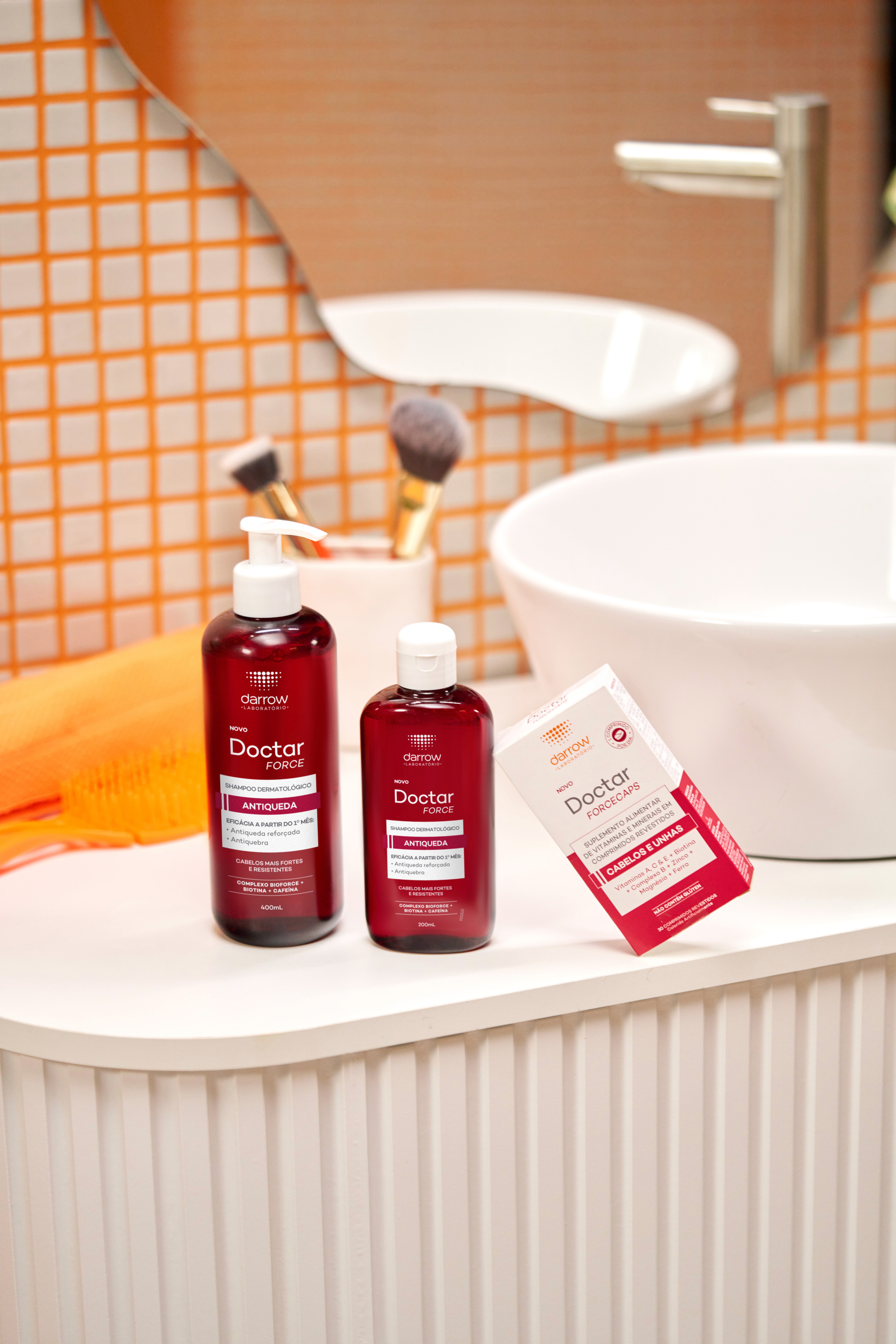 Para o lançamento, criamos um set de banheiro real dentro do estúdio. A direção de arte partiu da paleta e do propósito da marca, trazendo autenticidade e proximidade de uso — um enquadramento do cotidiano pensado para sair do óbvio.
